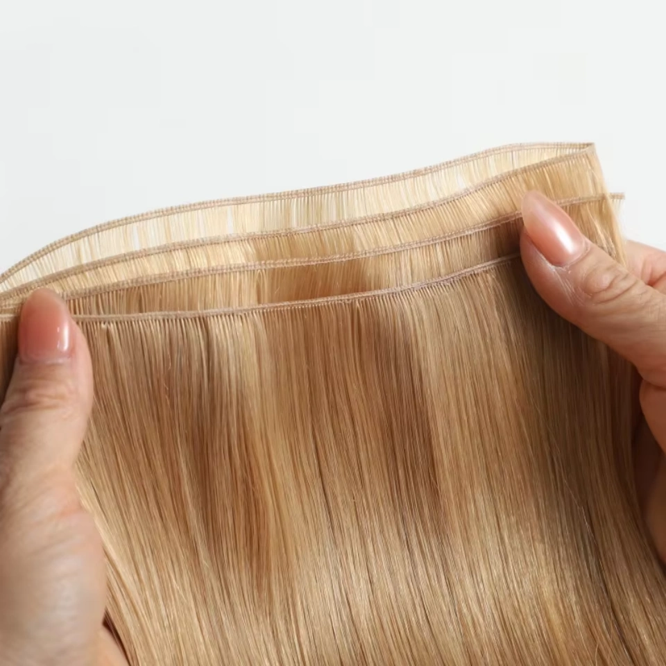 Ścieżka wątku jest niewiarygodnie płaska i ma zaledwie 2 mm szerokości, dzięki czemu ta konstrukcja idealnie nadaje się do cienkich i średnich rodzajów włosów w porównaniu do wątków wytwarzanych maszynowo. Wybierz nas jako swojego dostawcę przedłużania włosów i ciesz się swobodą dostosowywania każdego stylu przedłużania włosów.