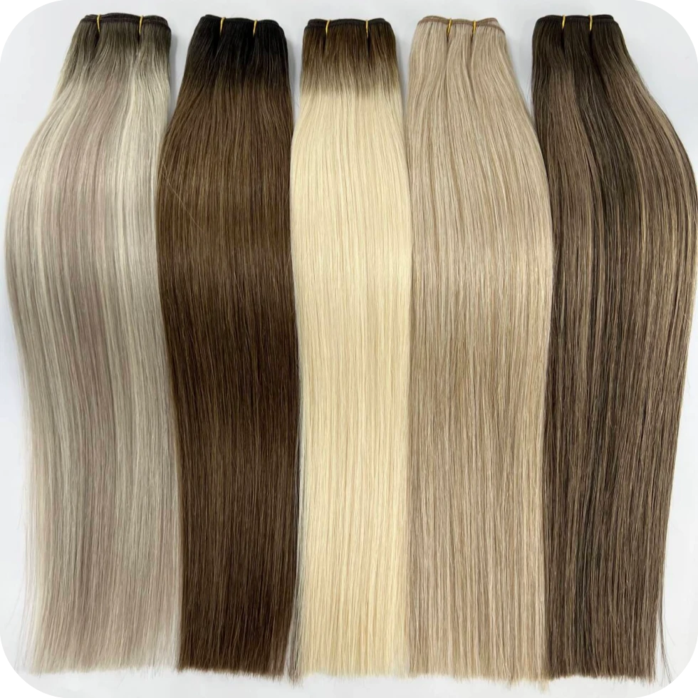 Wykonywane maszynowo doczepiane włosy wątkowe to najlepszy wybór dla modnych kobiet w kraju i za granicą, które chcą dodać włosom objętości i długości. Poniżej znajdują się najważniejsze zalety naszych maszynowych przedłużaczy wątku:
